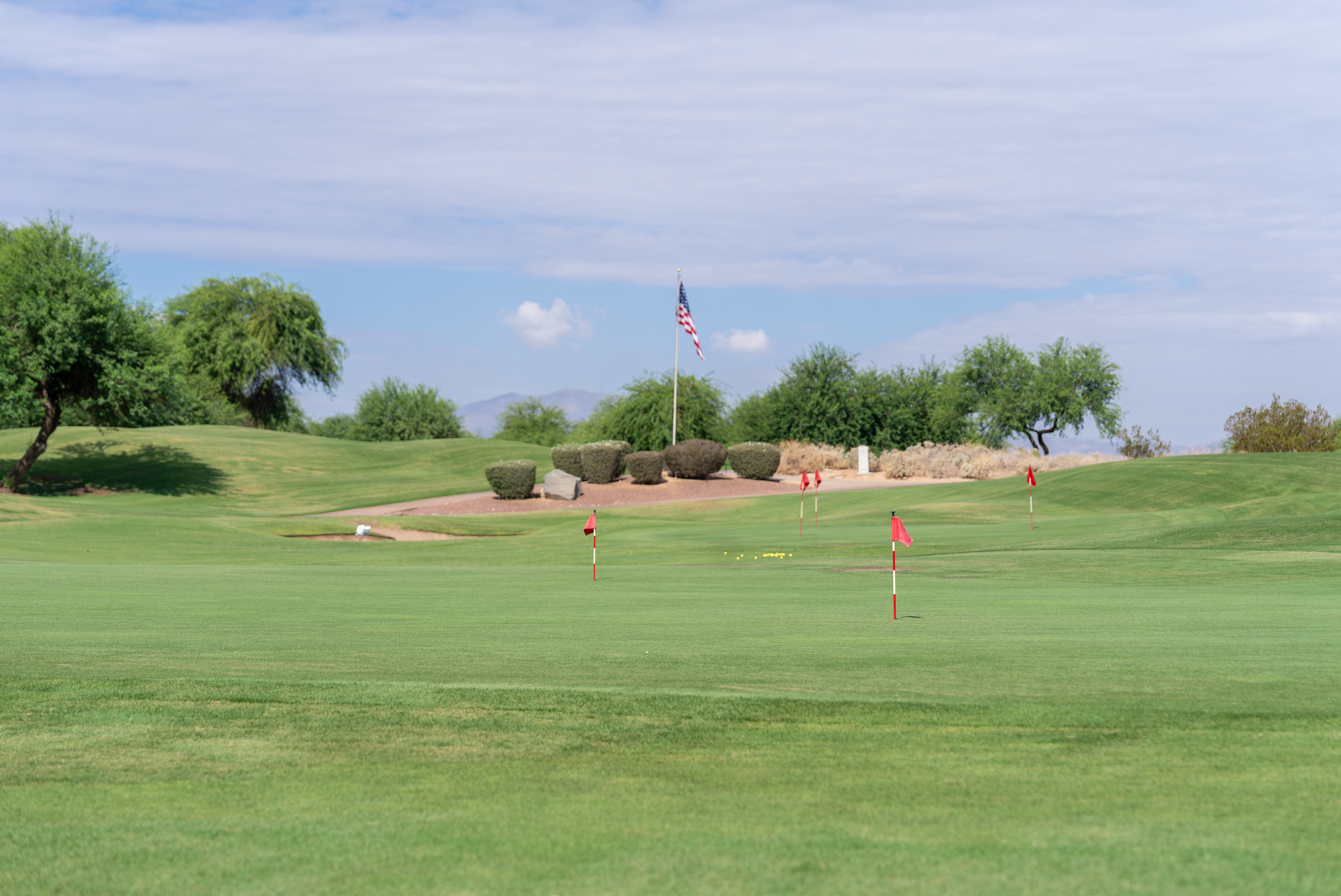 The Falcon Dunes Golf Course is a military course situated just north of Luke Air Force Base and it is open to all qualifing military and government employees, active or retired. It is a links-style course that is highlighted by unique, native desert landscaping. The championship course provides a challenging game with several elevation changes throughout the course and abundance of natural vegetation surrounding the fairways. Water hazards and sand bunkers also come into play on the course. Some of the holes at Falcon Dunes Golf Course also offer beautiful views of the White Tank Mountains in the distance.