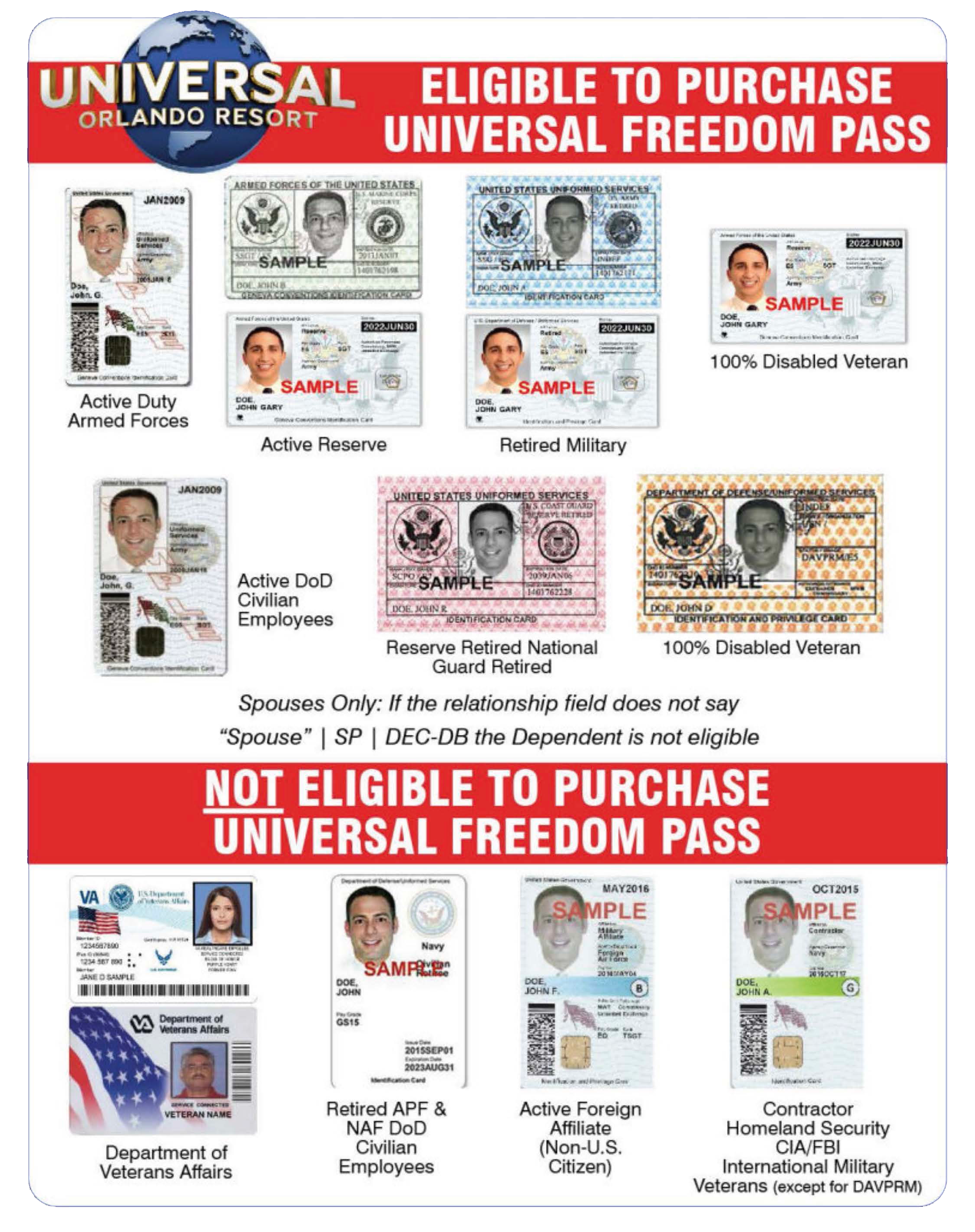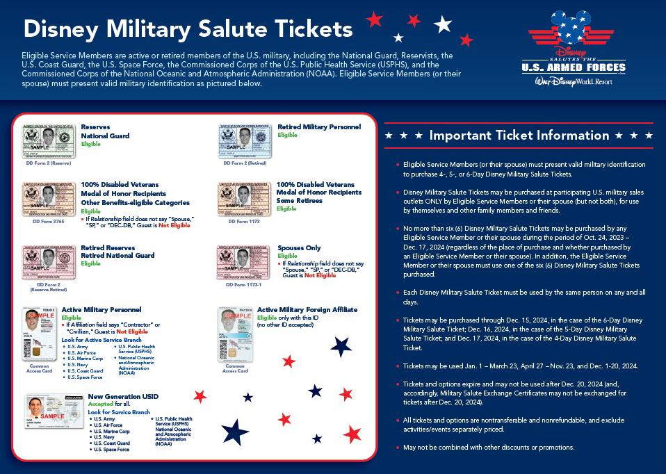 • Some promotional tickets may not be available for non-retired veterans per theme park